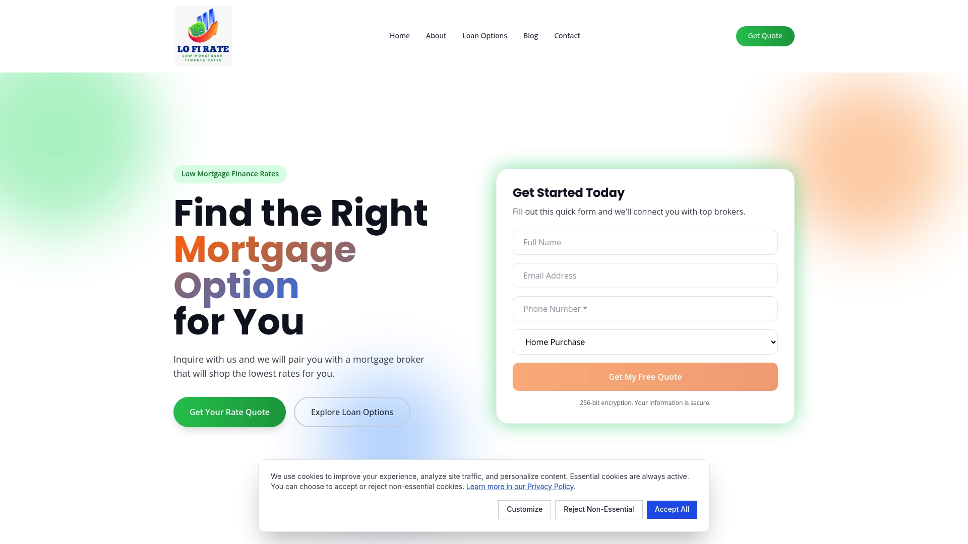 Lofi Rate centers on matching users with mortgage brokers and providing tailored rate comparisons and content. The platform emphasizes privacy and cookie preferences so users control their experience and data.