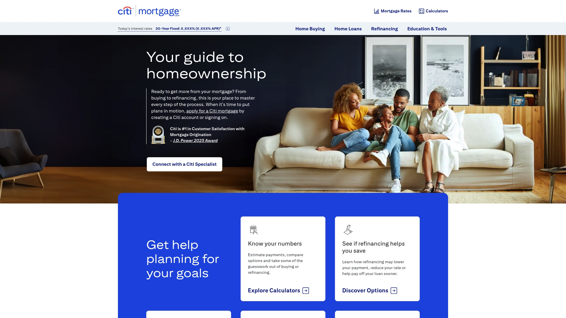 Mortgage.com by Citi is a resource hub that pairs educational content with tools and an option to apply for a mortgage through Citi. It works best when you want bank-backed guidance, online calculators, and direct access to a Citi mortgage specialist.