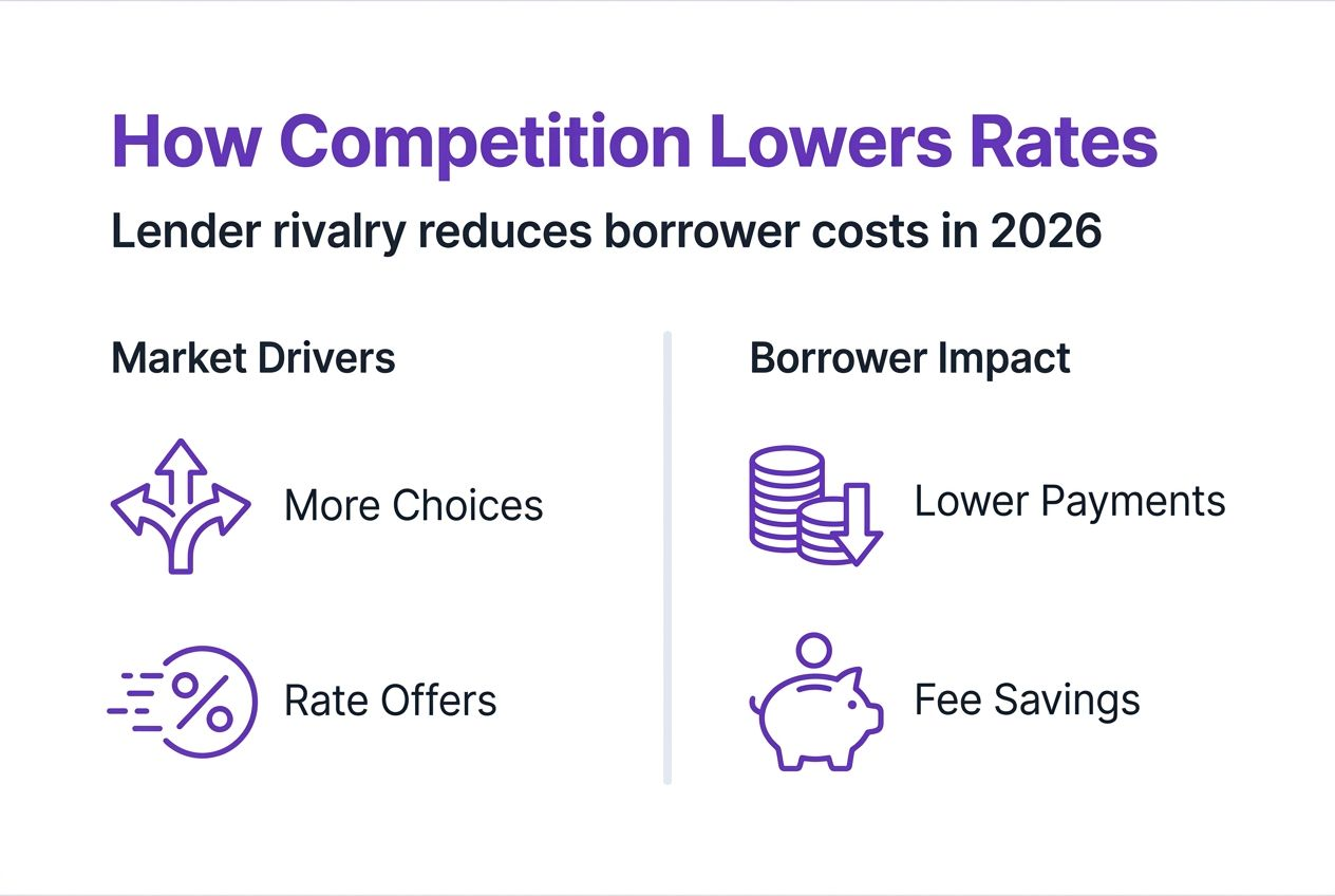 Lender competition can reduce your mortgage rate by 0.25% to 0.5%, potentially saving you thousands of dollars over a 30-year loan. Many borrowers miss these savings by limiting their search to one or two lenders. This guide reveals how lender competition impacts rates in 2026 and how wholesale mortgage brokers help you access the best pricing available.